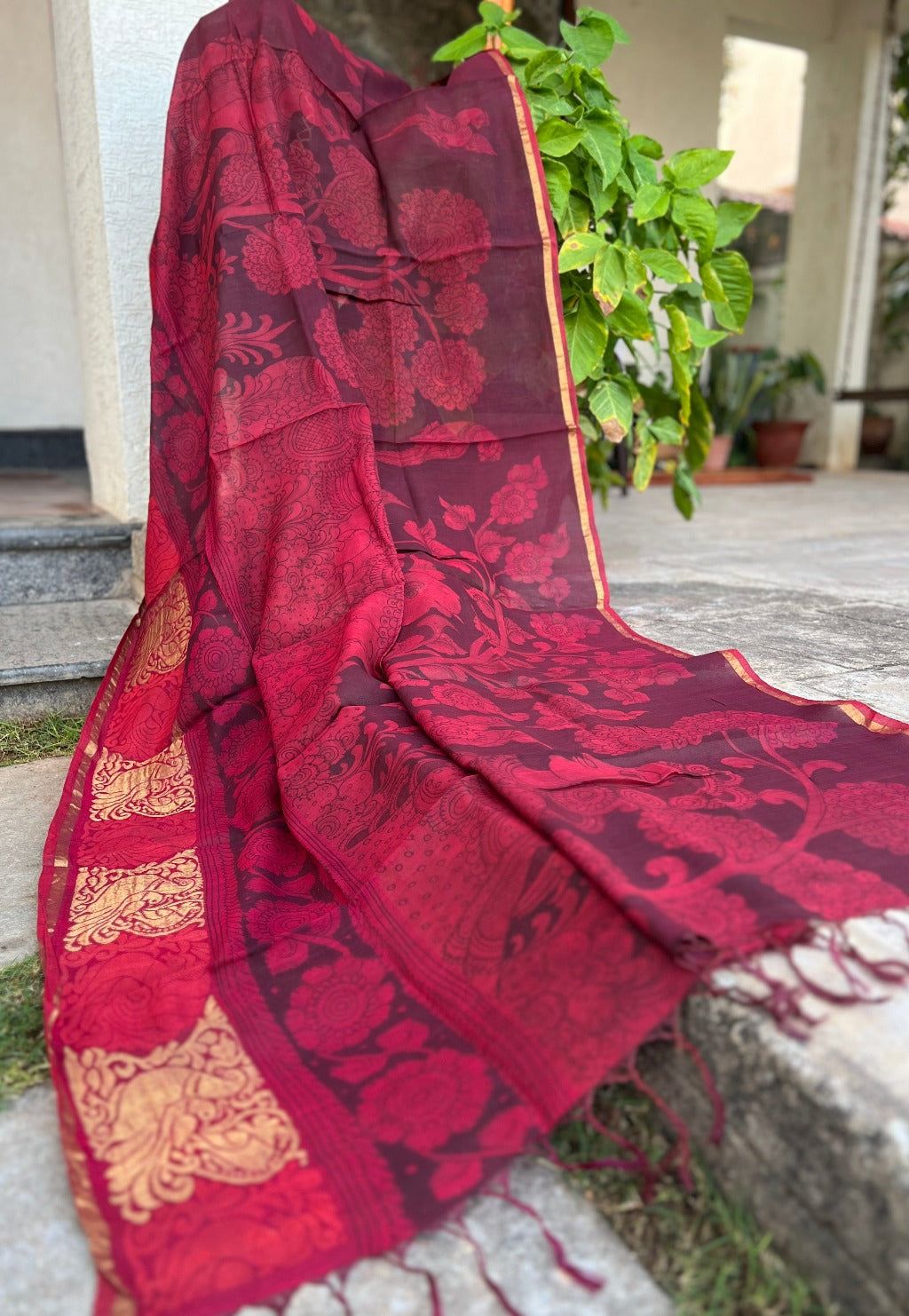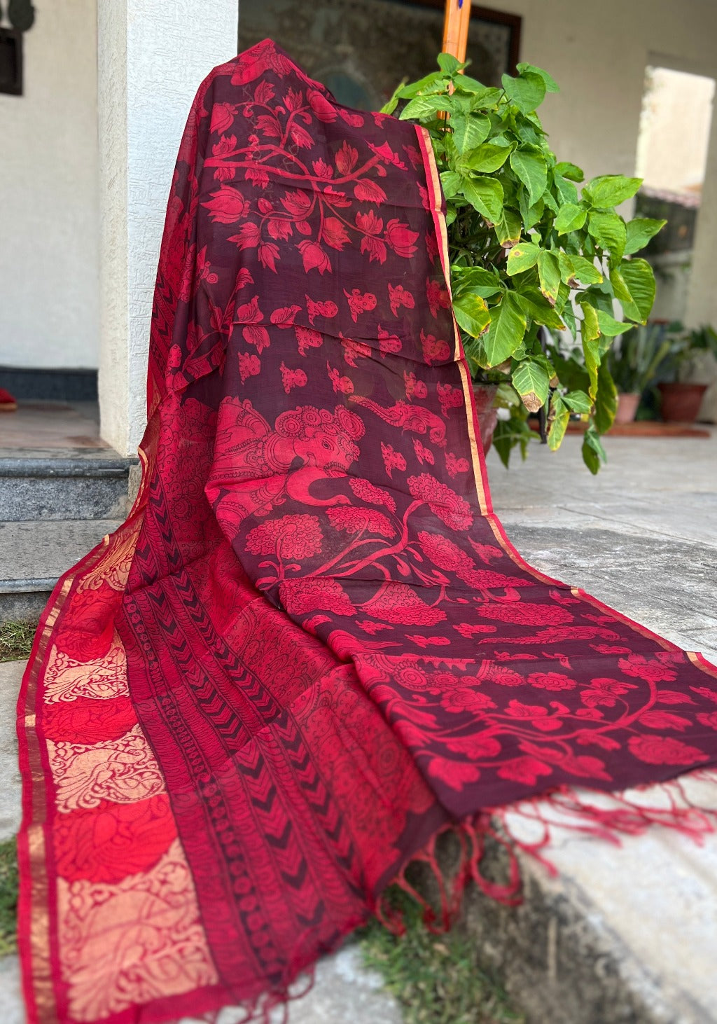 Mayilrava Kalamkari with Kutch Embroidered Blouse