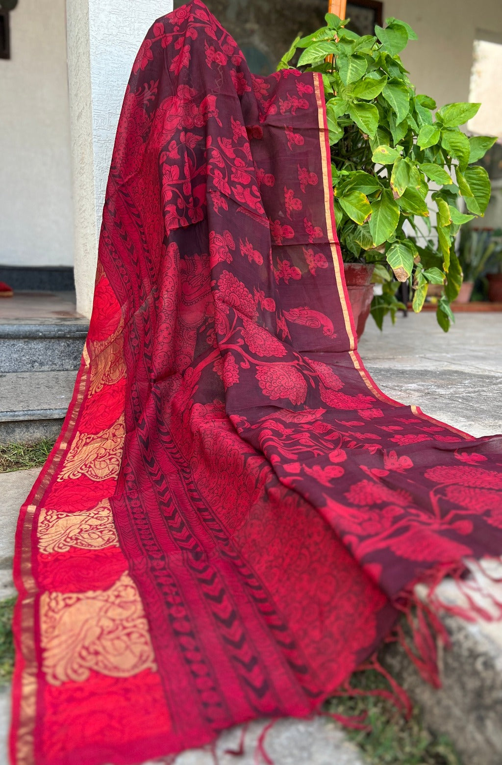 Mayura Nritya Kalamkari with Kutch Embroidered Blouse