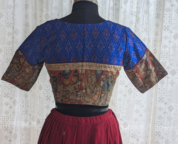 Blue Enigma Ikat with Kantha Embroidery Blouse