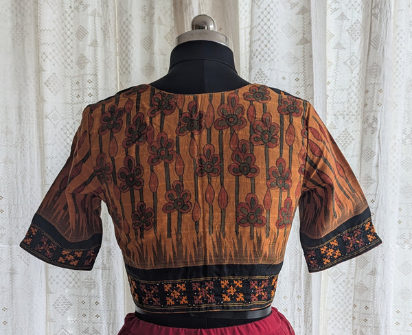 Rudrapushpa Kalamkari with Kutch Embroidered Blouse